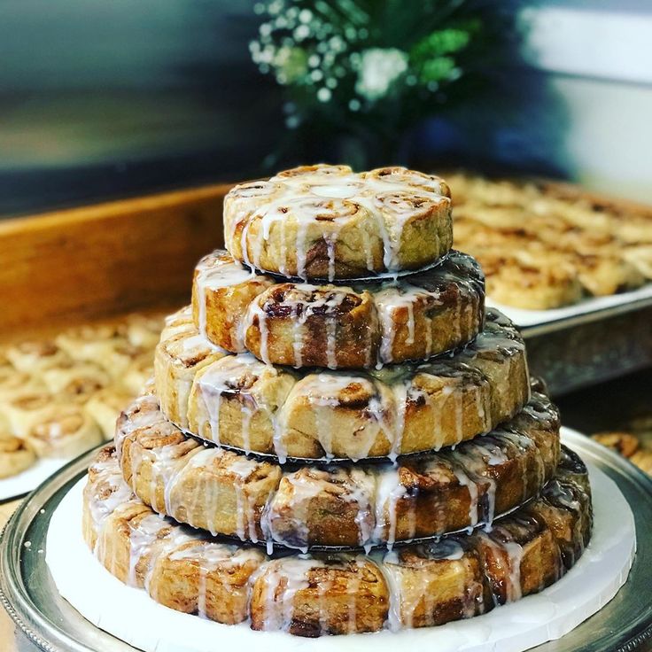 Warm cinnamon rolls with cream cheese glaze and pecans