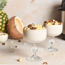 Layers of coconut mousse, passion fruit, and toasted coconut flakes
