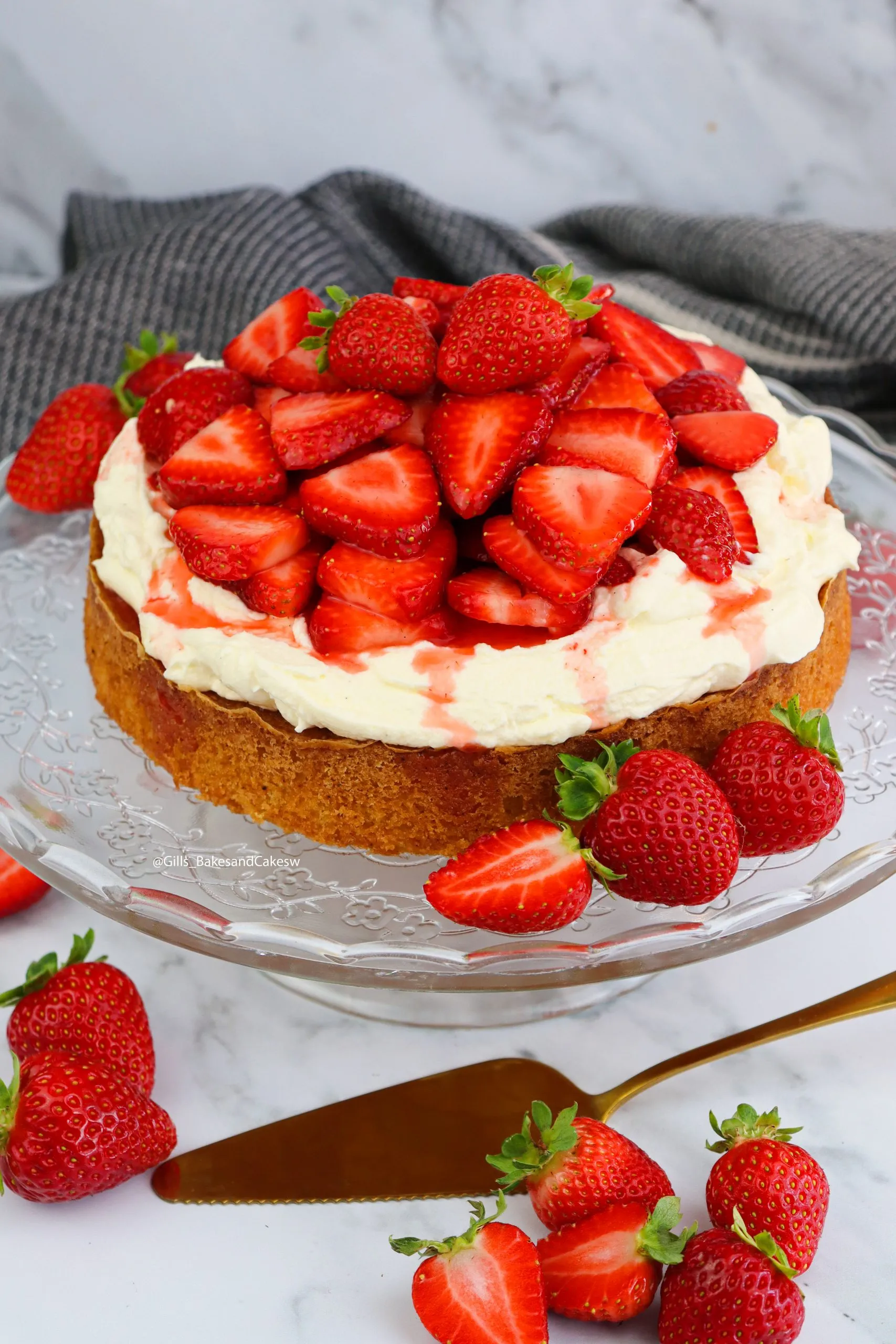 Delicate vanilla sponge topped with Swiss buttercream and edible gold leaf